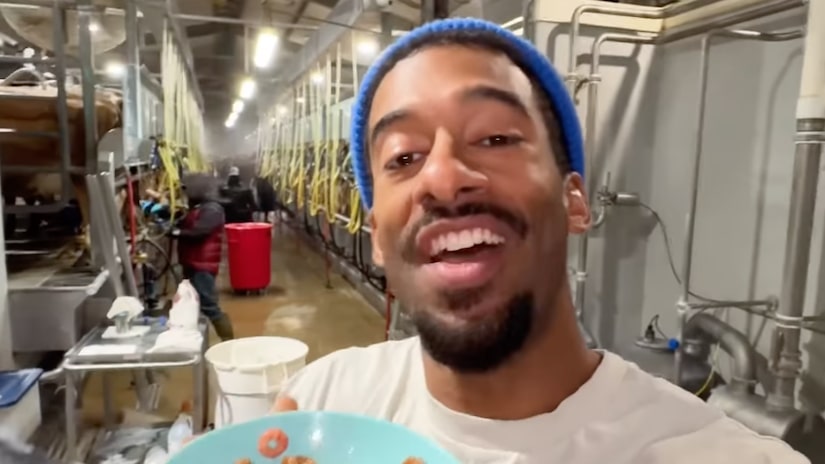bachelor insider Matt James Drinks Raw Milks Directly from a Cow While Living on a Raw Farm: ‘Day One’