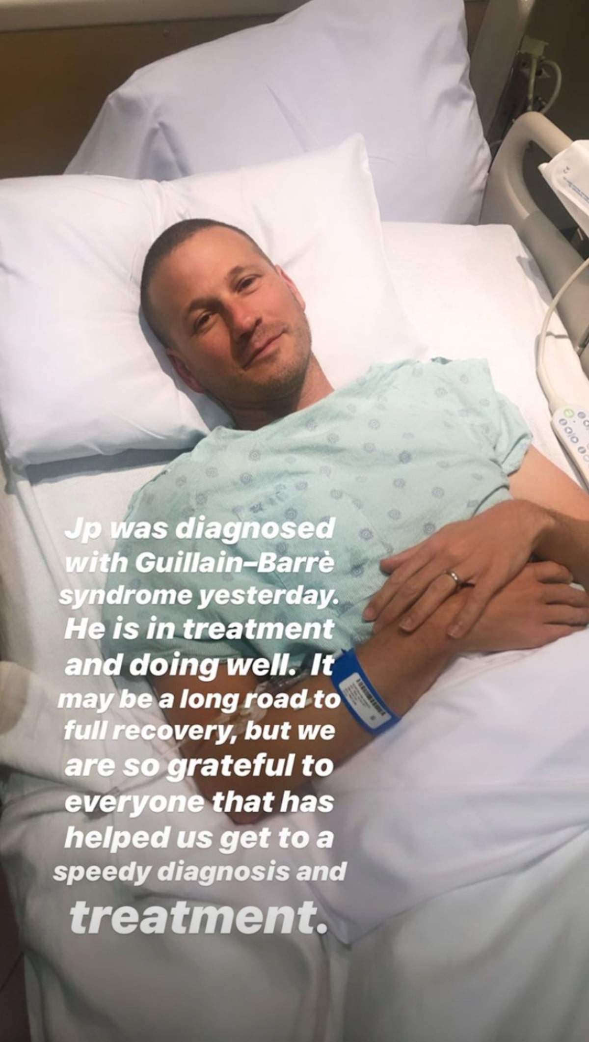 Ashley posted a photo of J.P. in his hospital bed on her Instagram Story and wrote, “Jp was diagnosed with Guillain-Barré syndrome yesterday. He is in treatment and doing well. It may be a long road to recovery, but we are so grateful to everyone that has helped us get to a speedy diagnosis and treatment.”