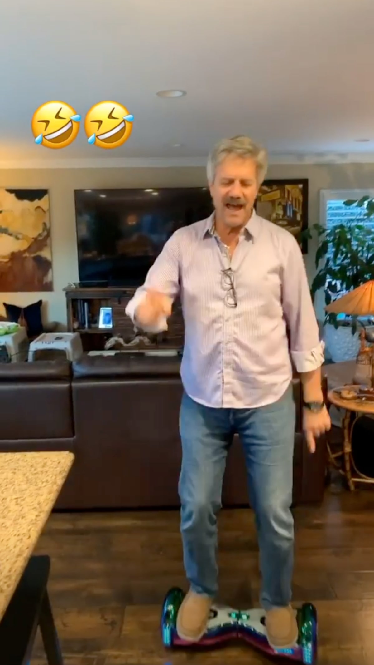 A few moments later, Peter Sr. caught the dance bug. He showed off some impressive multitasking as he sang and moved around on a self-balancing hoverboard as REO Speedwagon’s song “Time for Me to Fly” aptly played in the background.