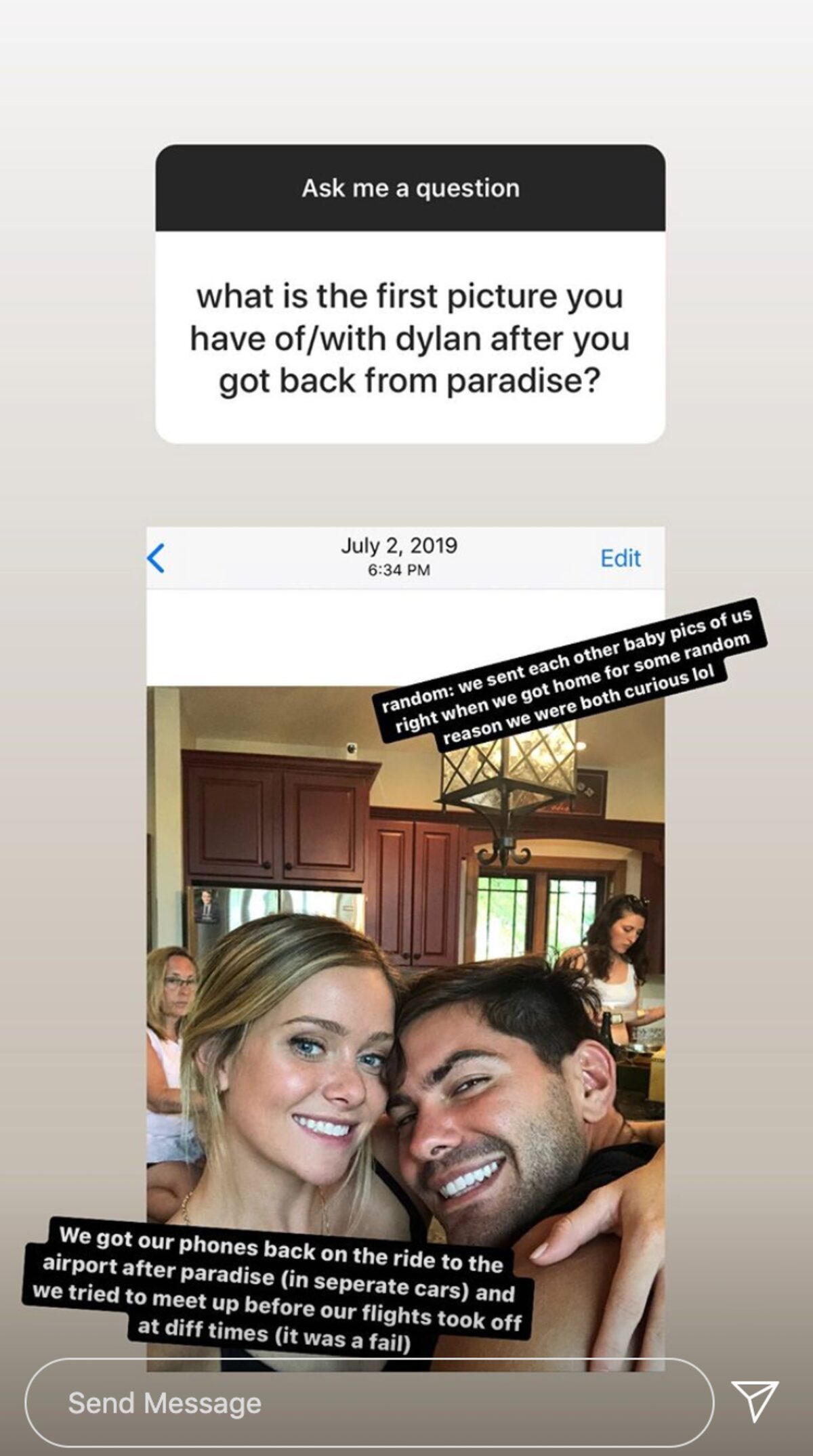 Dylan and Hannah celebrated their one-year engagement anniversary June 27, and on Monday, Hannah shared what life looked like right after the proposal in 2019. Hannah answered a series of questions on her Instagram Story, including one that asked, "what is the first picture you have of/with dylan after you got back from paradise?"
