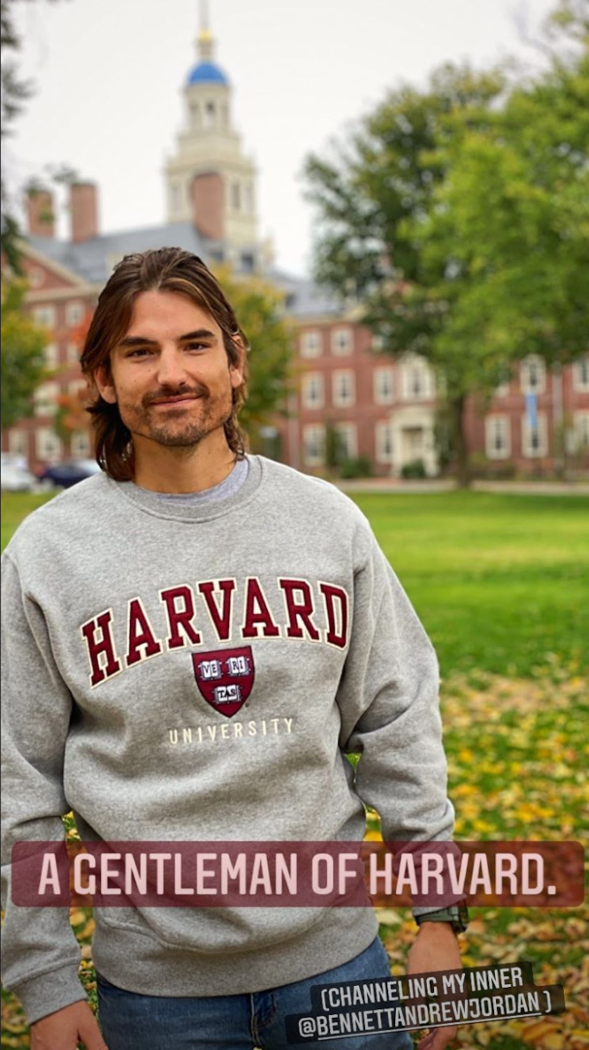 The "Bachelor in Paradise" couple walked around the world-famous Harvard Yard decked out in fall gear as they took in the beautiful foliage around them. Jared even walked around in a Harvard sweatshirt and captioned a photo of himself on his Instagram Story, "A gentleman of Harvard."