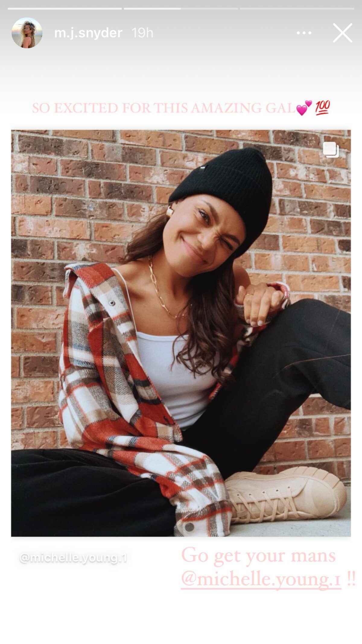 MJ Snyder was also thrilled to see Michelle take on the role. “So excited for this amazing gal,” she wrote on her Story. “Go get your mans @michelle.young.1!!”