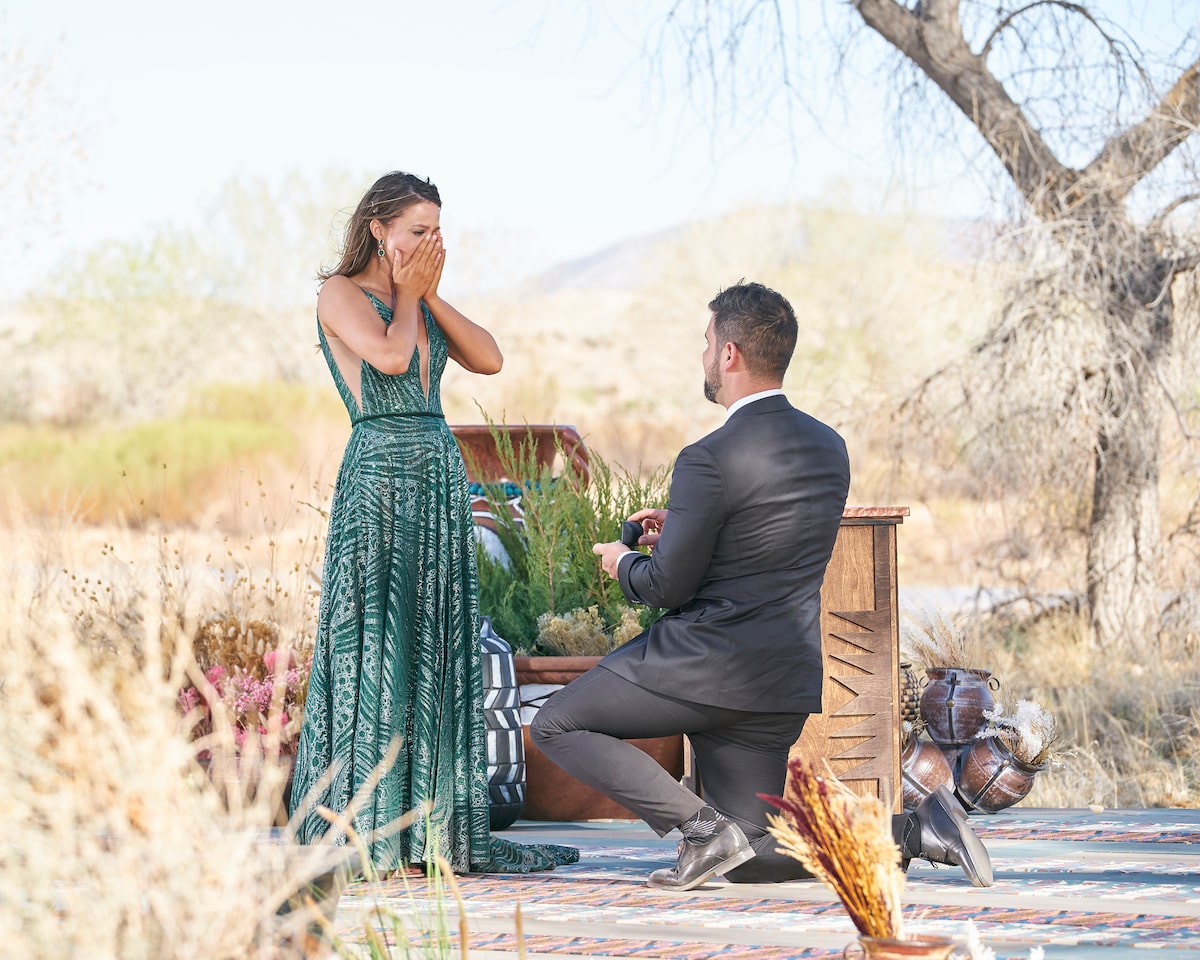 They did it! Katie Thurston’s run as the Bachelorette ended Monday night with a romantic proposal from Blake Moynes. Shortly after saying goodbye to runner-up Justin Glaze, the Season 17 lead headed to the desert of New Mexico, where she waited for the man who won her heart.