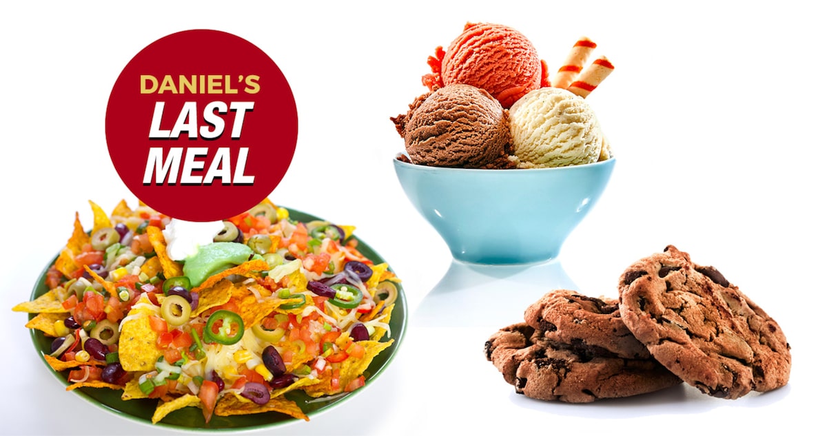 7. My last meal on earth would be: Nachos, ice cream, and chocolate chip cookies.