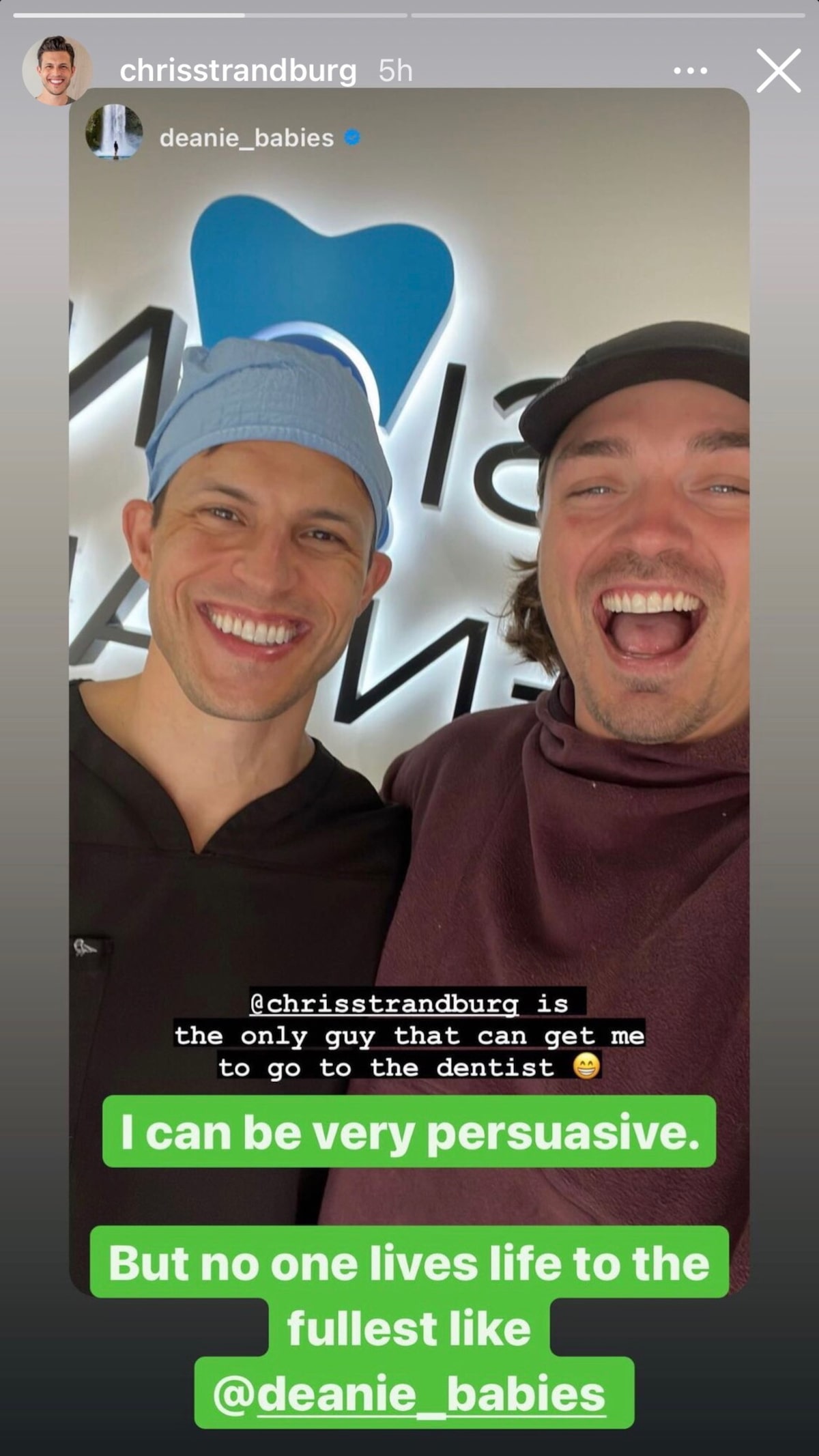 Dean took to Instagram and wrote, “Chris is the only guy that can get me to go to the dentist!” with a smiling emoji.