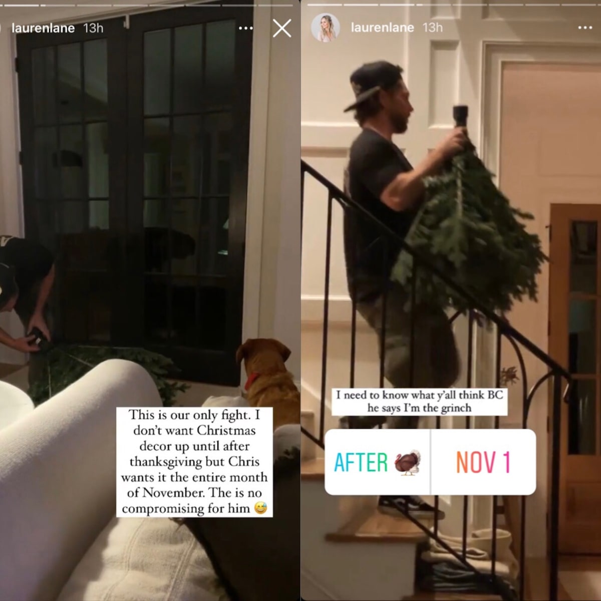 Lauren took to her IG Stories and wrote, “This is our only fight. I don’t want Christmas decor up until after Thanksgiving, but Chris wants it up the entire month of November. There is no compromise for him.”
