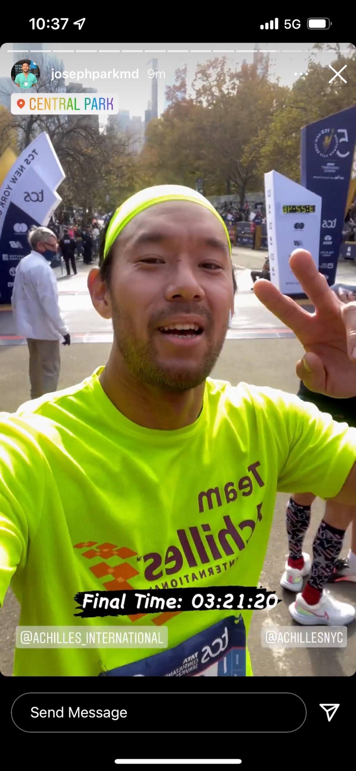 Dr. Joe Park also ran the marathon and completed it in an extremely impressive 3 hours and 21 minutes.