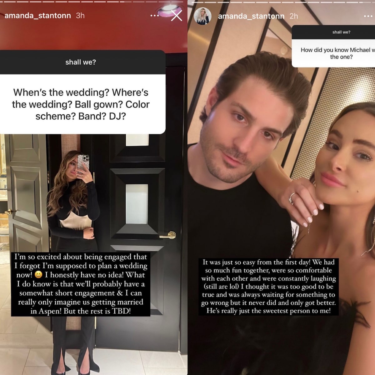 And on her IG Stories, Amanda revealed that while she and Michael had discussed getting married down the road, she “had NO idea” that a proposal was coming so soon.