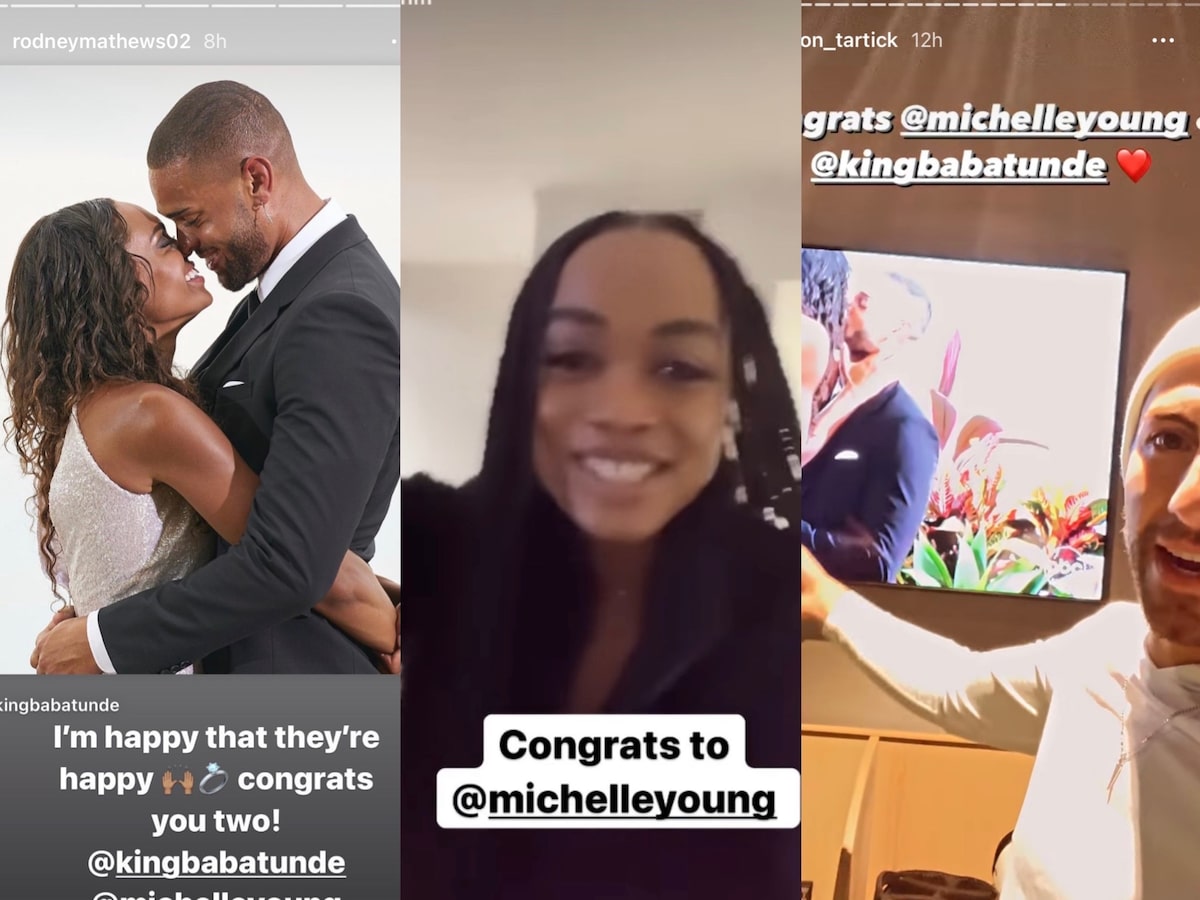 Former Bachelorette Rachel Lindsay also shared a video congratulating Michelle and Nayte on their beautiful engagement, and Bri Springs wrote that she couldn’t get over how gorgeous Michelle looked.