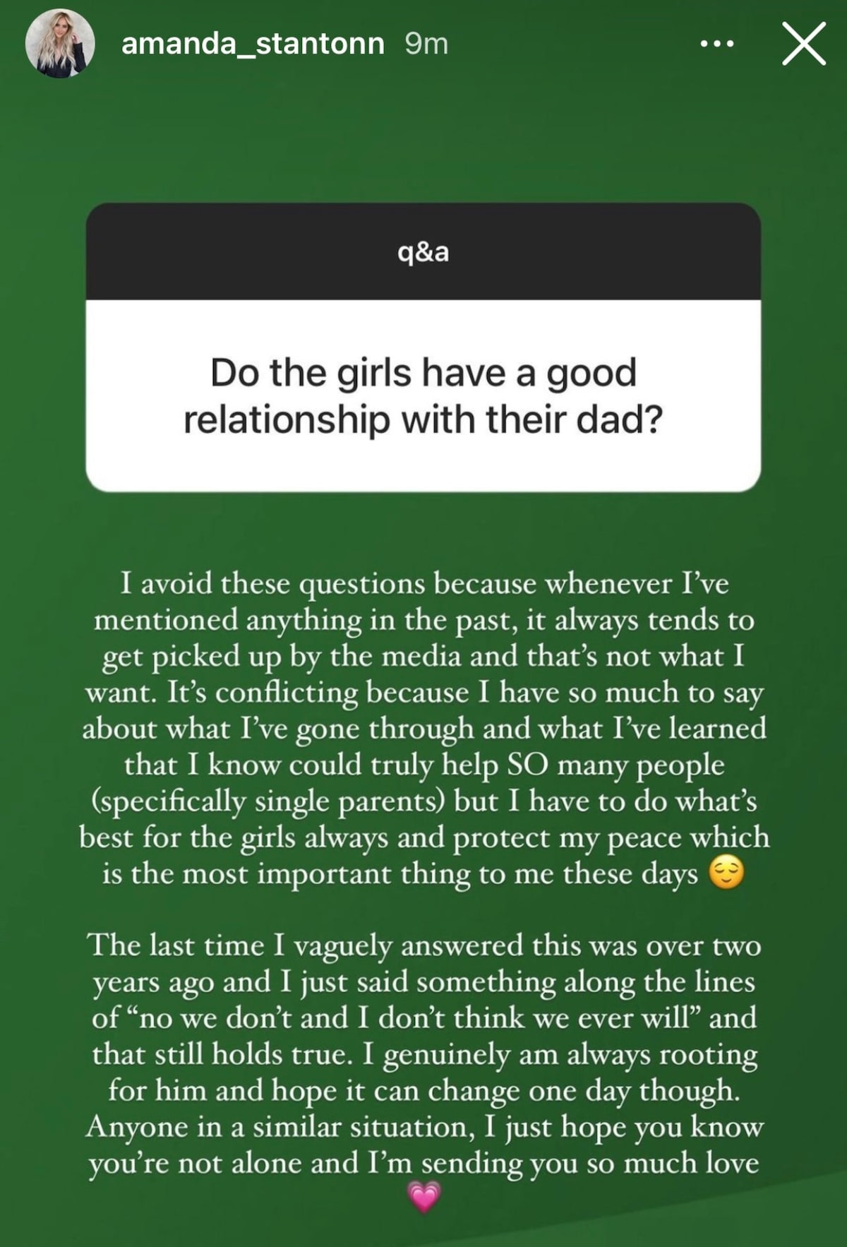 Now, Amanda is opening up about why she doesn’t speak much about her daughters’ dad.