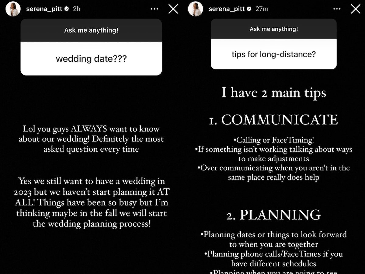 She replied, “LOL you guys ALWAYS want to know about our wedding! Definitely the most asked question every time. Yes, we still want to have our wedding in 2023, but we haven’t started planning it at all. Things have been so busy, but I’m thinking maybe in the fall we will start the wedding planning process!”