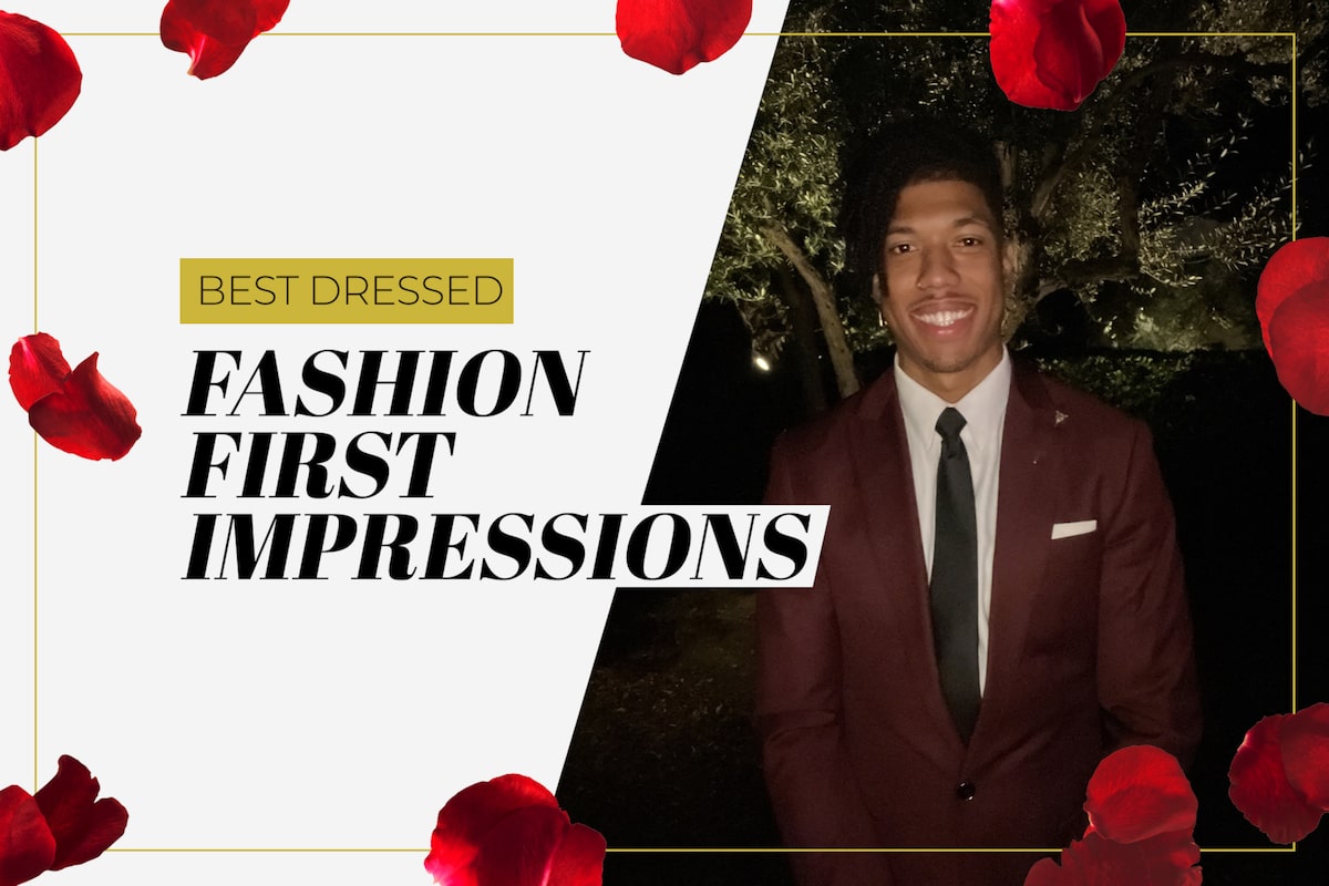 Best dressed of the night goes to Nate! Nate slid out of the limo in a very cool slim-fit burgundy suit and a skinny black tie. Usually I am all about a classic black suit, but this outfit was a 10/10!! So trendy, a perfect fit, and a great way to stand out in a sea of navy, gray, and black suits. We also LOVE his attention to detail, as he paired it with a gorgeous gold watch! Hopefully he can bring his style and flair to the rest of this season!