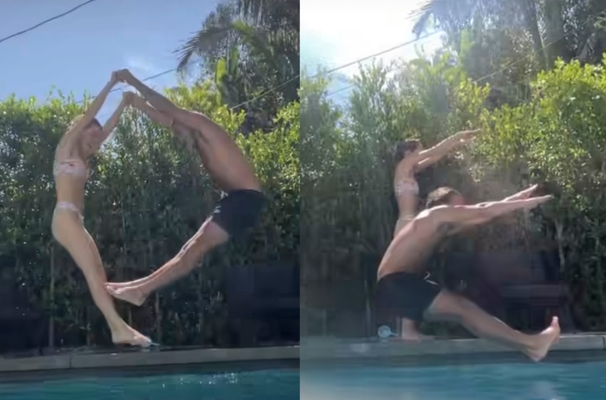 In this trend, two people try to create the letters L, O, V, and E while jumping in the pool to the tune of Michael Bublé’s song “L.O.V.E.”