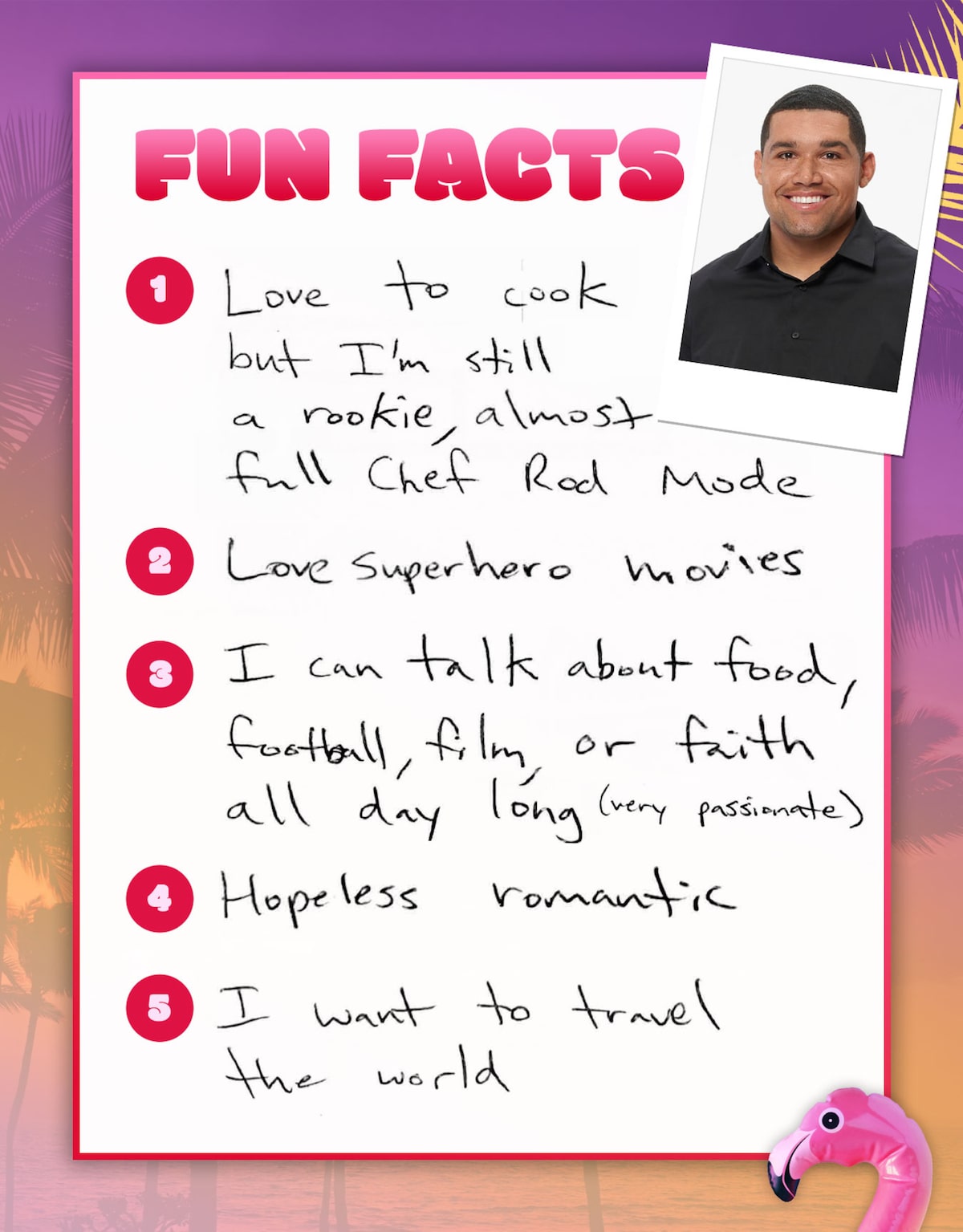 While prepping for the summer spin-off show, the standout contestant filled out a “Paradise Profile” — a series here on BachelorNation.com — to let fans learn a little more about him.