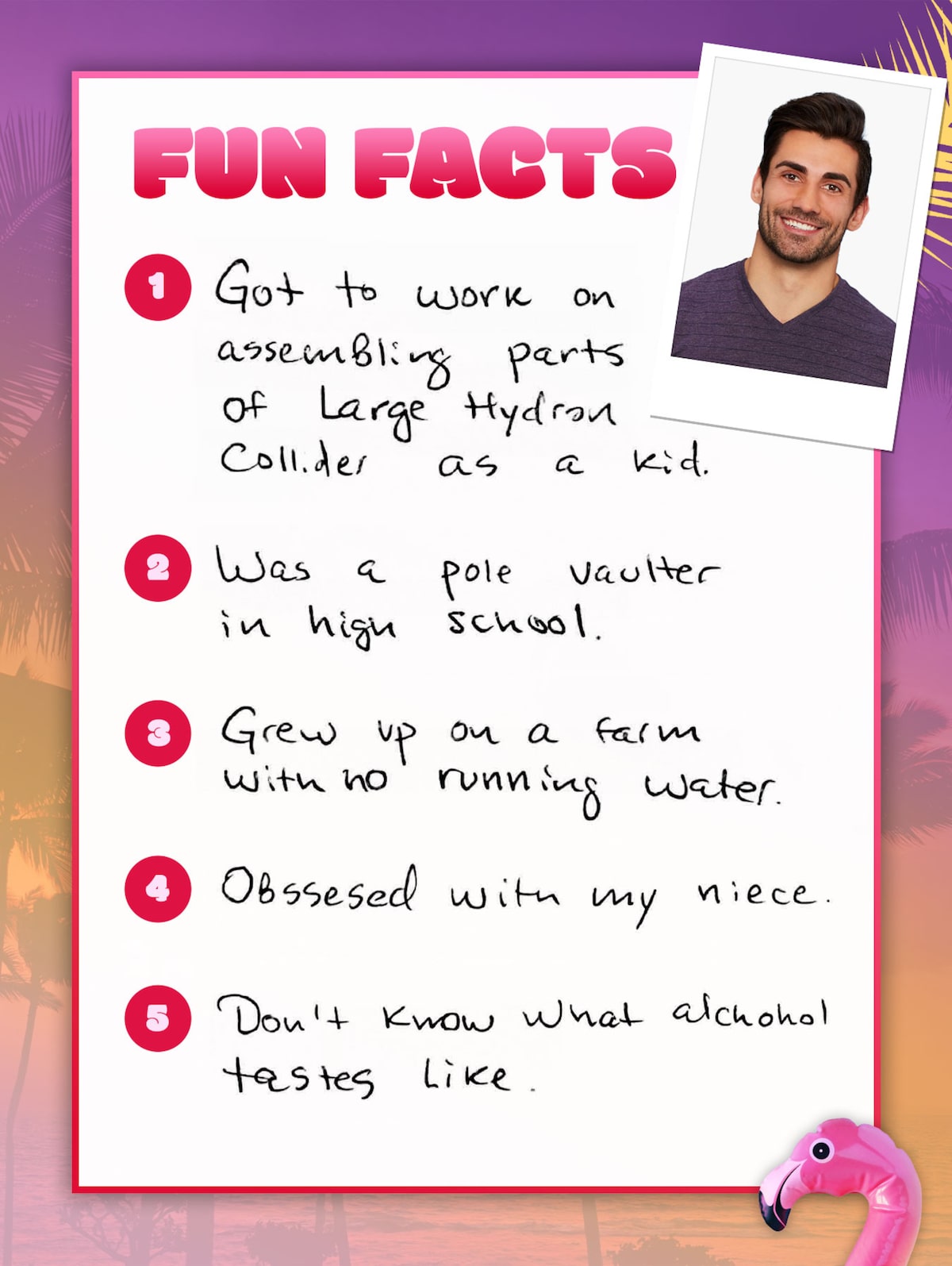 While prepping for the summer spin-off show, the standout contestant filled out a “Paradise Profile” — a series here on BachelorNation.com — to let fans learn a little more about him.