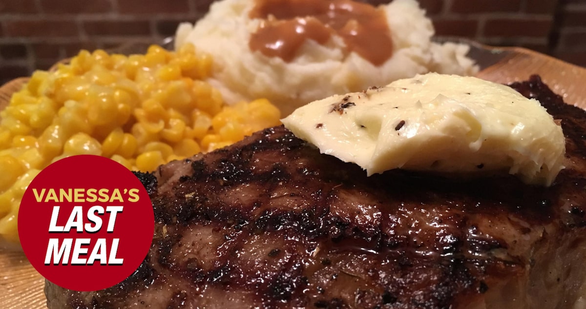 7. My last meal on earth would be: Medium-rare rib-eye with a side of mashed potatoes and corn.