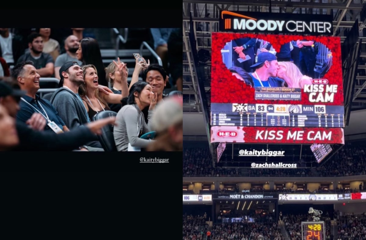 Zach and Kaity were spotted on the jumbotron and even shared a sweet moment kissing on the Kiss Cam.