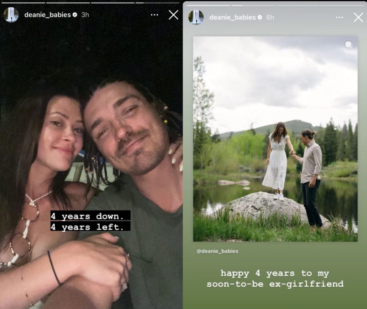 The two took to Instagram to celebrate their milestone anniversary and Caelynn shared a photo of Dean holding up four fingers.