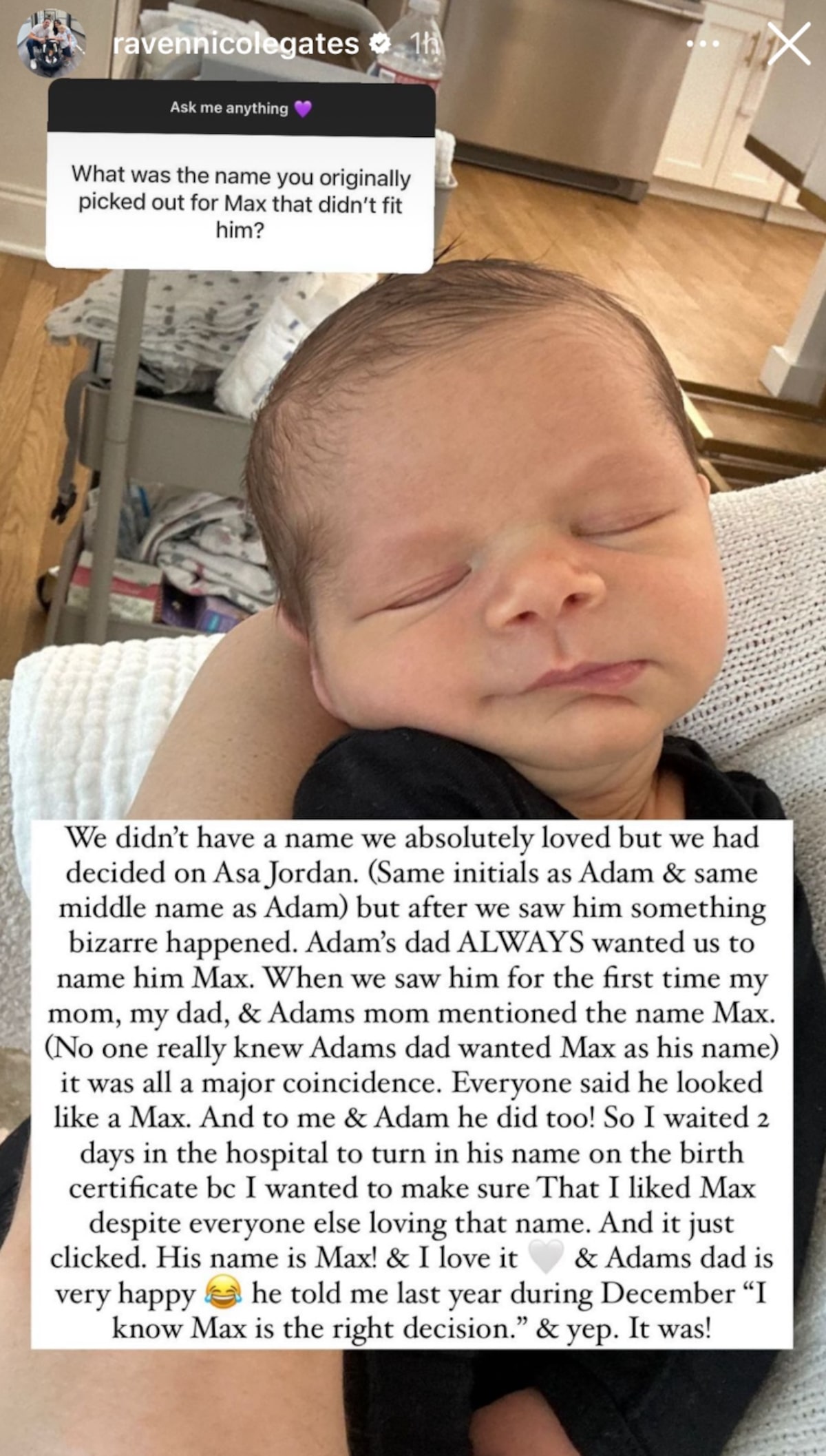 After Max was born, Raven and Adam waited a few days to share his name and revealed they originally had a different name picked out for him.