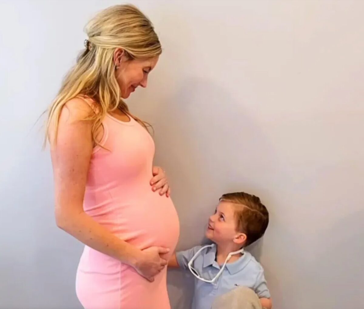 Then as a series of photos of a positive pregnancy test, ultrasound, and baby bump flash across the screen, Whitney wrote, “And then … an unexpected miracle. Brady Carolina, You are more than we ever expected and better than we could have ever imagined.”