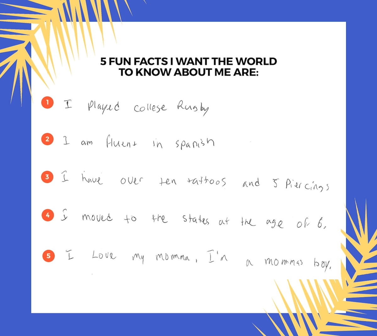 While prepping for the summer spin-off show, the standout contestant filled out a “Paradise Profile” — a series here on BachelorNation.com — to let fans learn a little more about him.