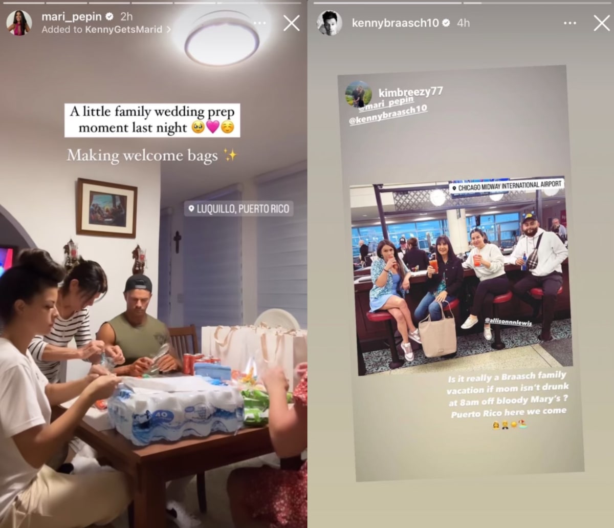 Mari shared a photo to her “Kenny Gets Mari’d” highlight and wrote, “A little family wedding prep moment last night. Making welcome bags!”