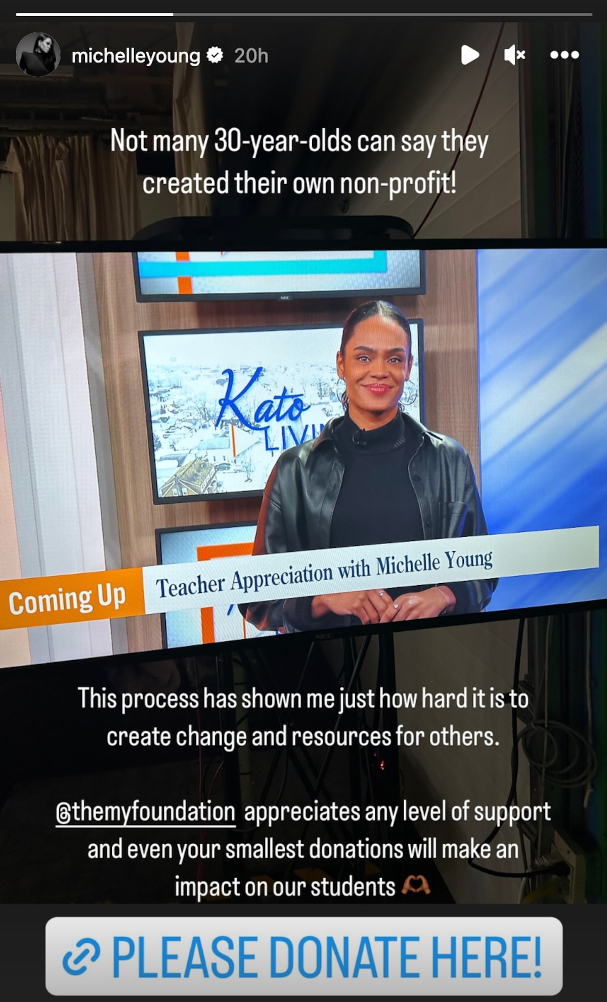 On her Instagram Stories, the former Bachelorette wrote, “Not many 30-year-olds can say they created their own non-profit! This process has shown me just how hard it is to create change and resources for others. The Michelle Young Foundation appreciates any level of support and even your smallest donations will make an impact on our students.”