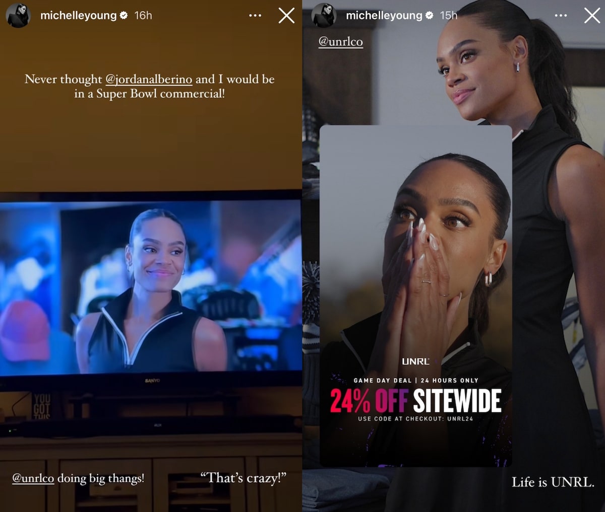 The commercial Michelle was in was for the brand UNRL, a clothing brand that specializes in athleisure.
