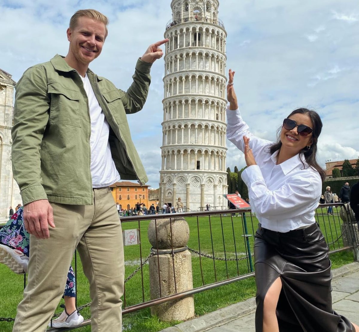 Catherine shared a photo with Sean at the Leaning Tower of Pisa, captioning it, “Gimme a Pisa dat 🇮🇹”