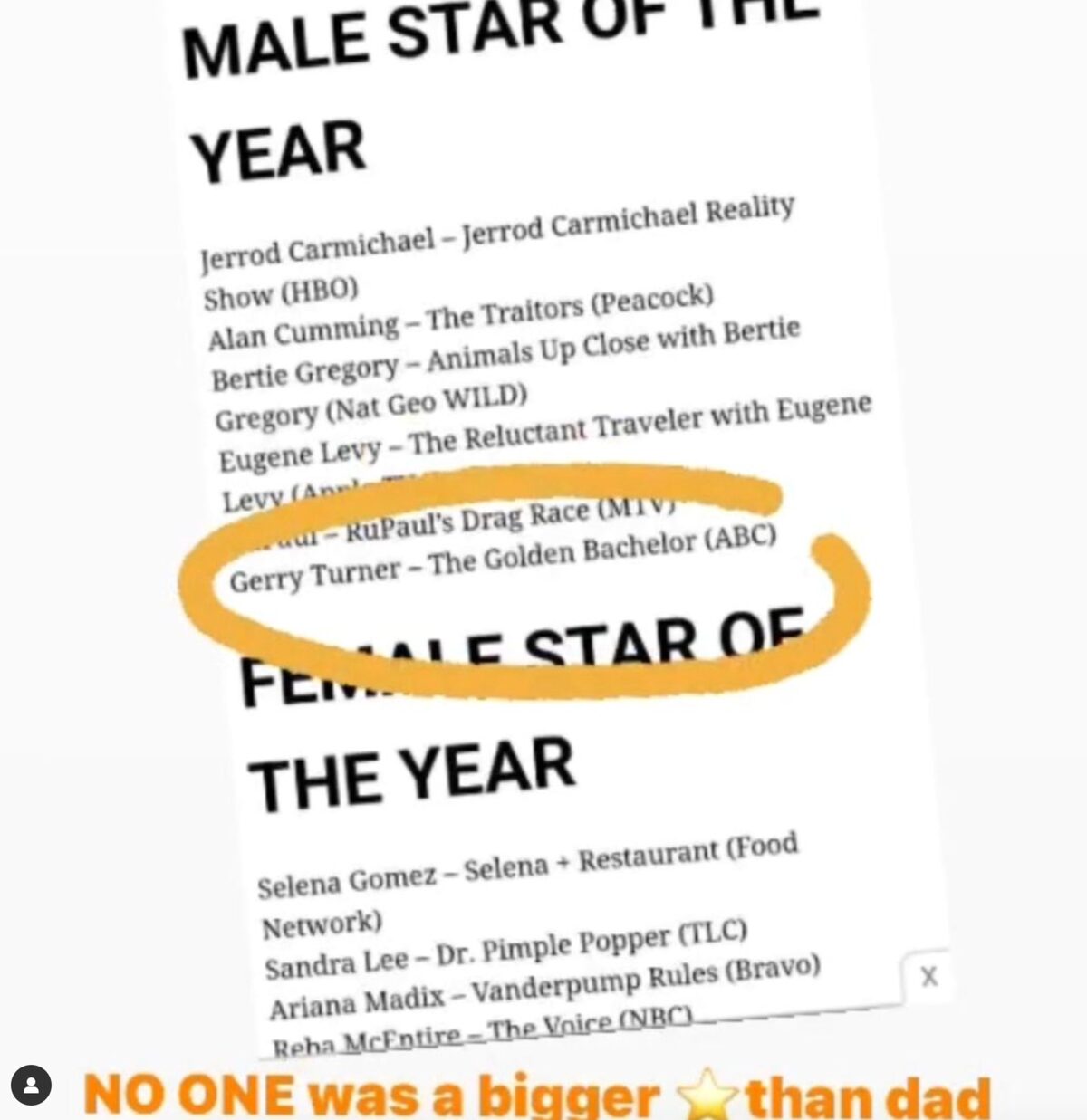 Gerry took to Instagram to share the exciting news and posted a screenshot from his daughter, who wrote, “No one was a bigger star than dad!”