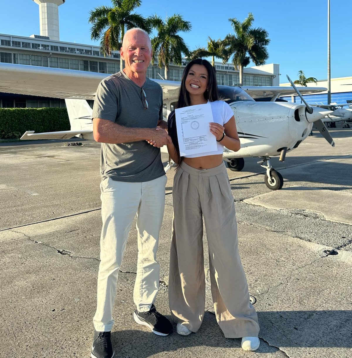 She also shared a video jumping for joy as she signed her license and wrote, “Leaving Miami not with a BBL but with a PPL 🥰✈️💫#privatepilot”