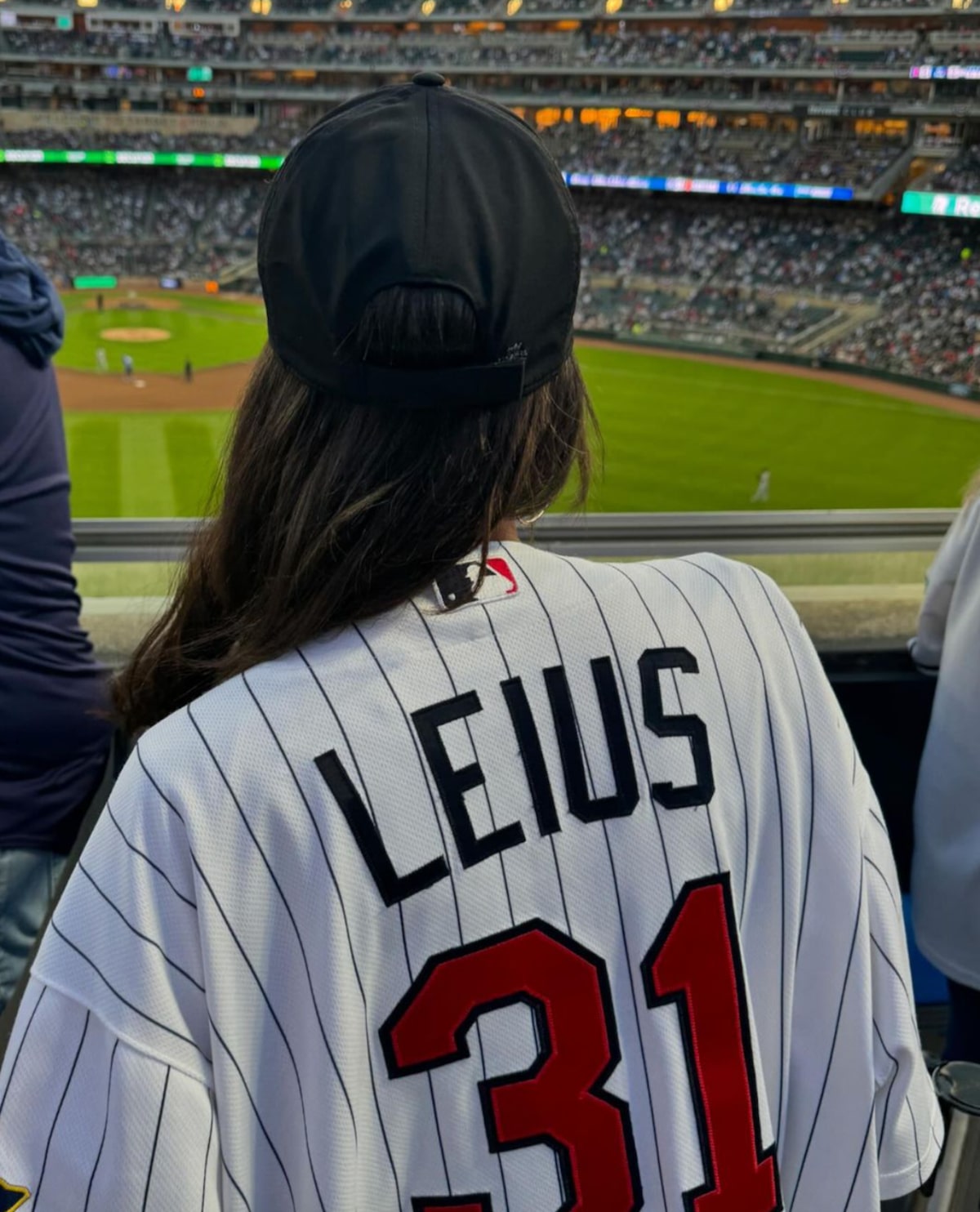 In the photo, Michelle wore a jersey with Jack’s last name on it alongside the number 31.