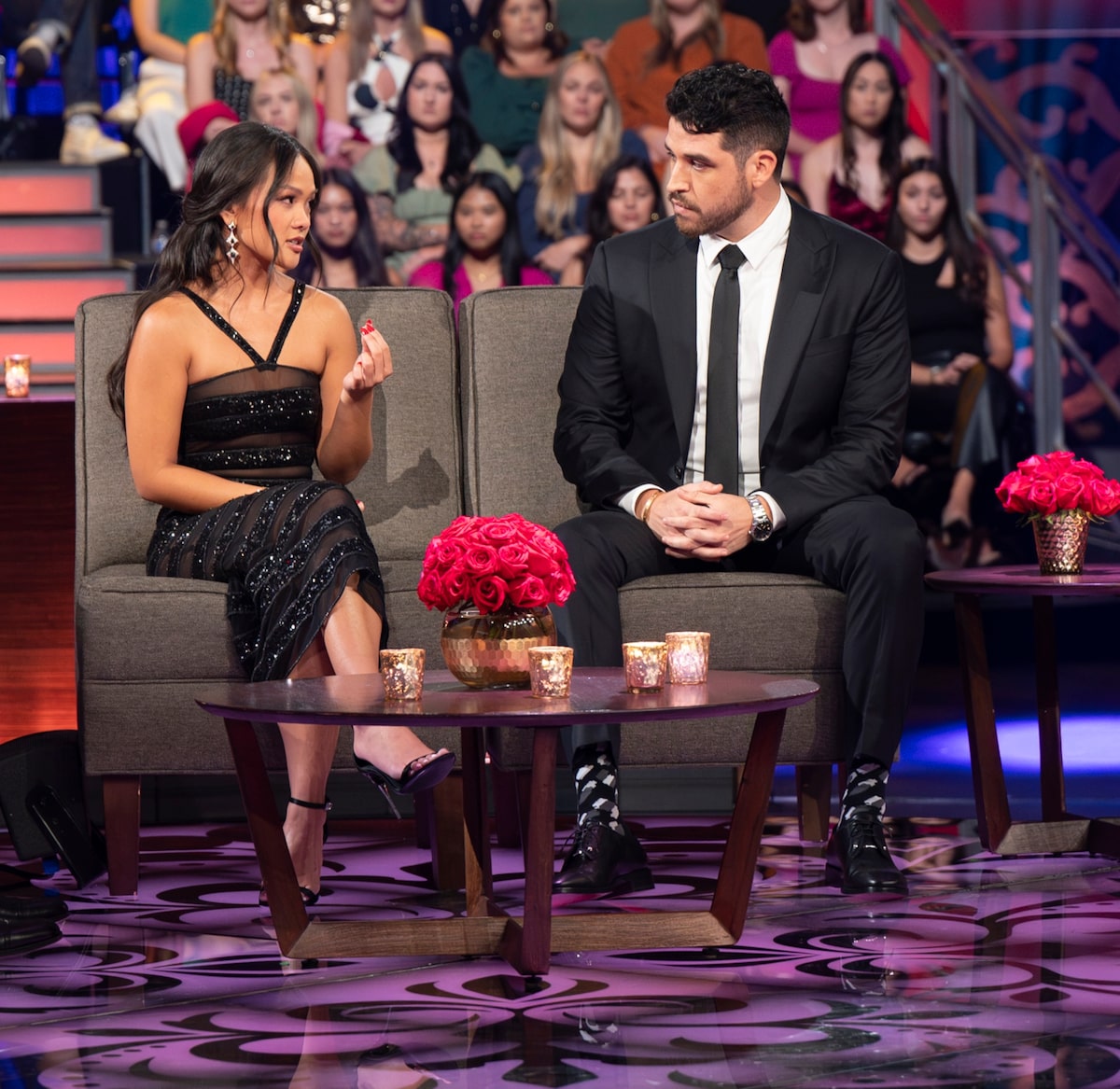 Jenn Tran: Thank you so much — love you guys. I would say going into the night, I was definitely freaked out and very anxious. I knew it was going to be very emotional seeing him for the first time since our breakup. I was pretty unhappy that he didn’t want to have a conversation off-camera beforehand, so that was very upsetting to me and made me even more nervous. And now after the fact, I was happy that I was able to say my piece and I was very happy to finally be able to finally go through the breakup with the rest of the world instead of having to hide it and pretend to be happy. So I think that closure and just being able to move on with myself and finally get everybody else on the same page was helpful. It didn’t really have anything to do with him, because he honestly didn’t give me very much.