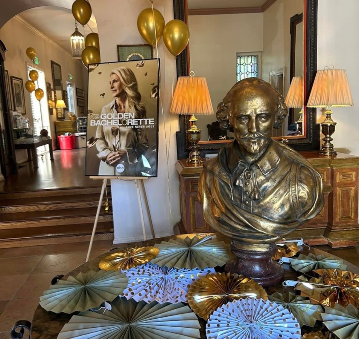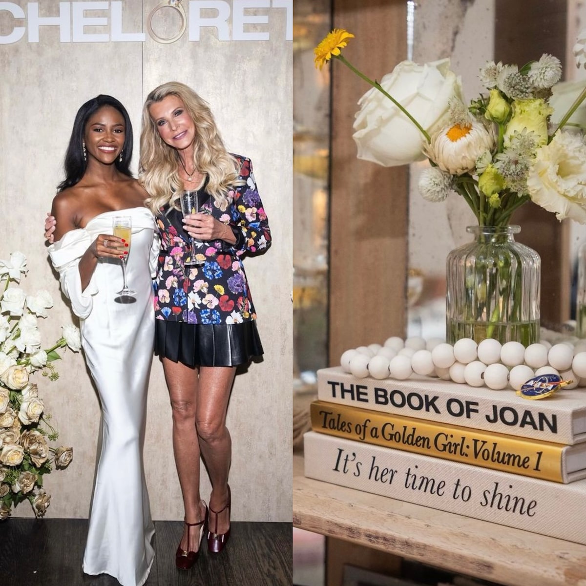 The afternoon tea event was decorated with beautiful white and gold roses, golden accessories, golden cutlery, a “Golden Bachelorette” backdrop, and cute personalized touches such as a stack of books that read: “The Book of Joan,” “Tales of a Golden Girl: Volume 1,” and “It’s Her Time to Shine.”