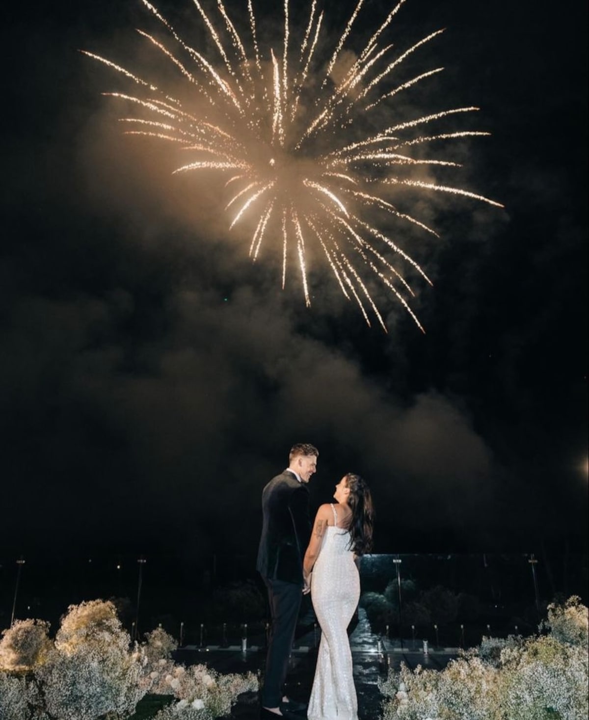 Taylor also posted a photo of him and his wife under a giant firework from their wedding and shared similar sentiments as Tia.