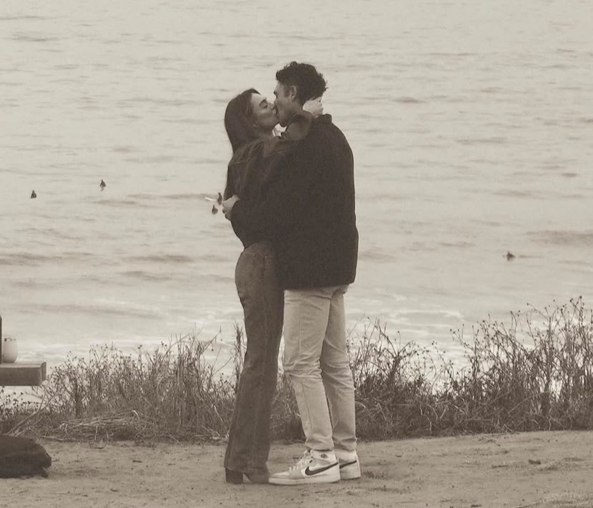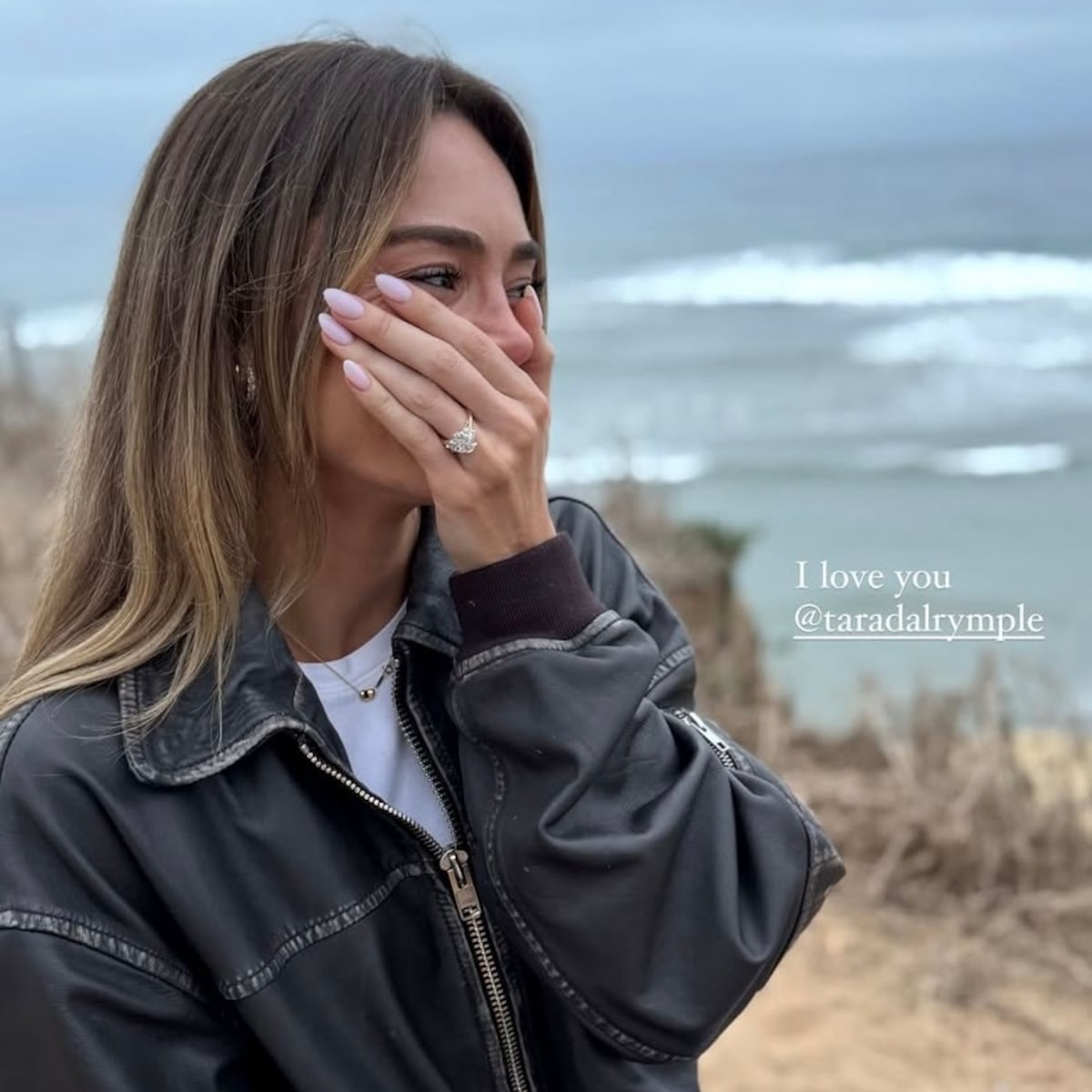 The next couple photos show the newly engaged fiancés kissing as she said yes, and then Tara looking out over the ocean still in shock, showing off her gorgeous new ring.