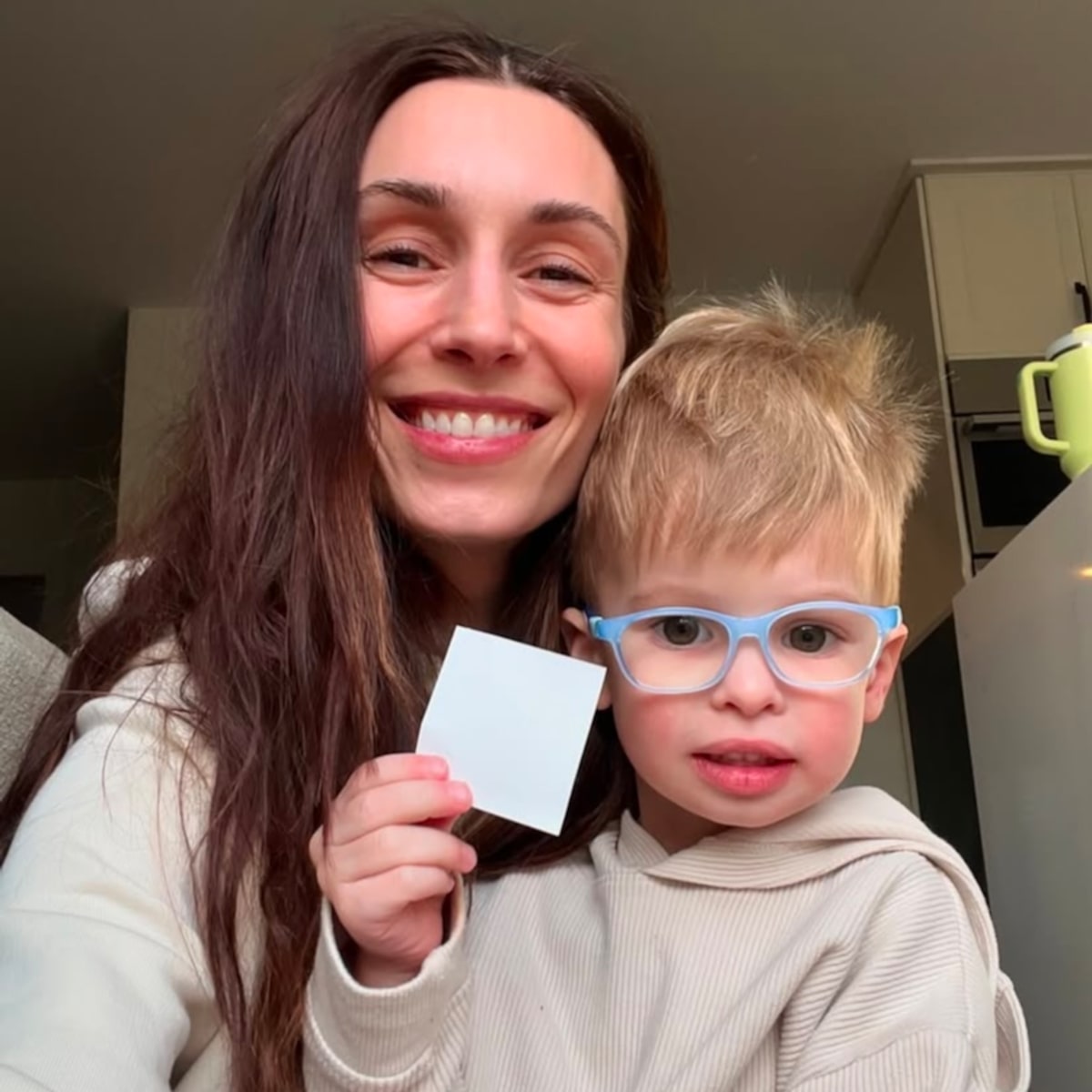He wrote, “Astrid and I both wore our blue light glasses around the house for 2 weeks before getting his, so he knew only the coolest kids like mommy and daddy wear glasses.”