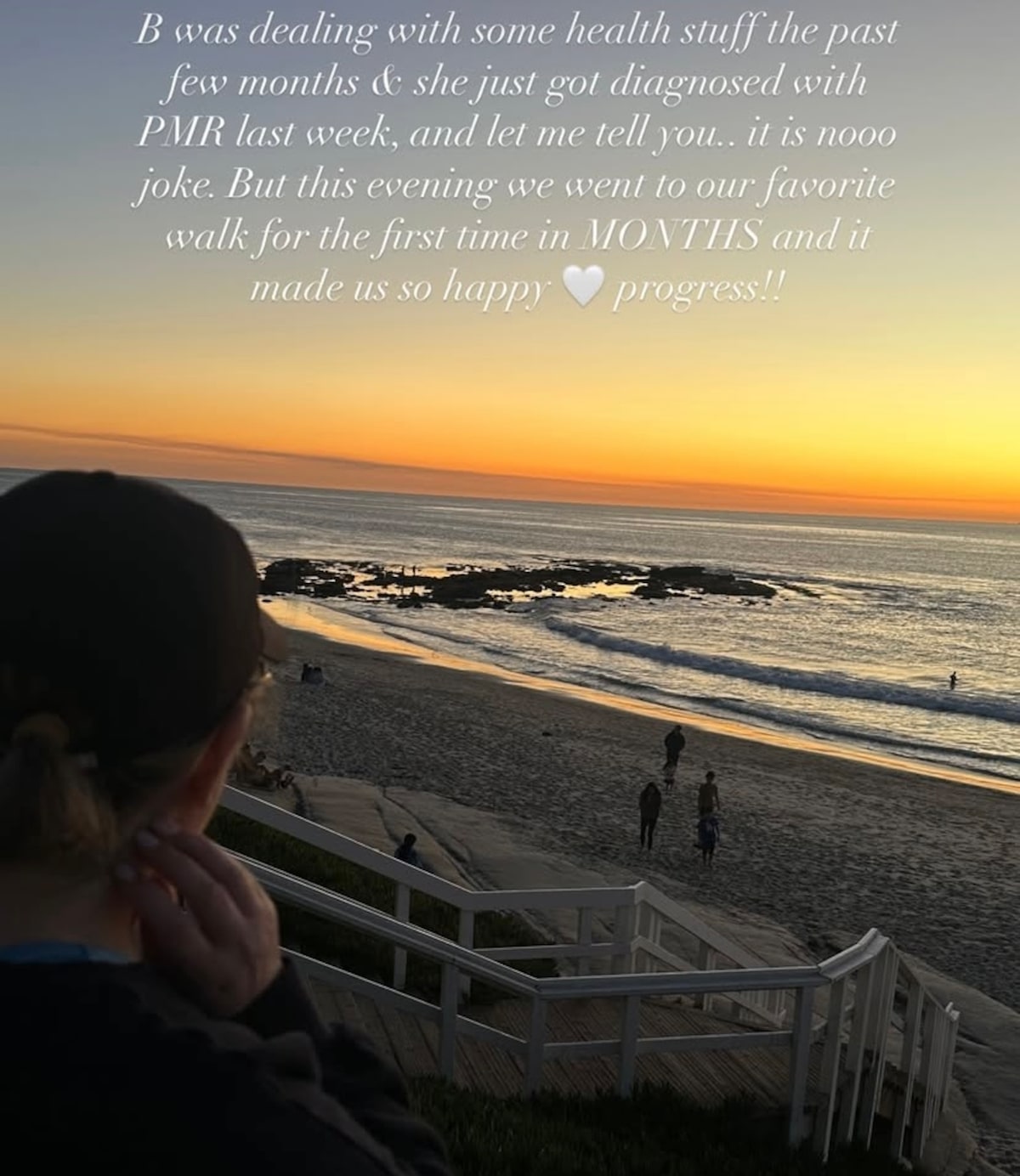 Over a photo of her mom enjoying the sunset on the beach, Hannah wrote, “B was dealing with some health stuff the past few months & she just got diagnosed with PMR [polymyalgia rheumatica] last week, and let me tell you…it is nooo joke.”