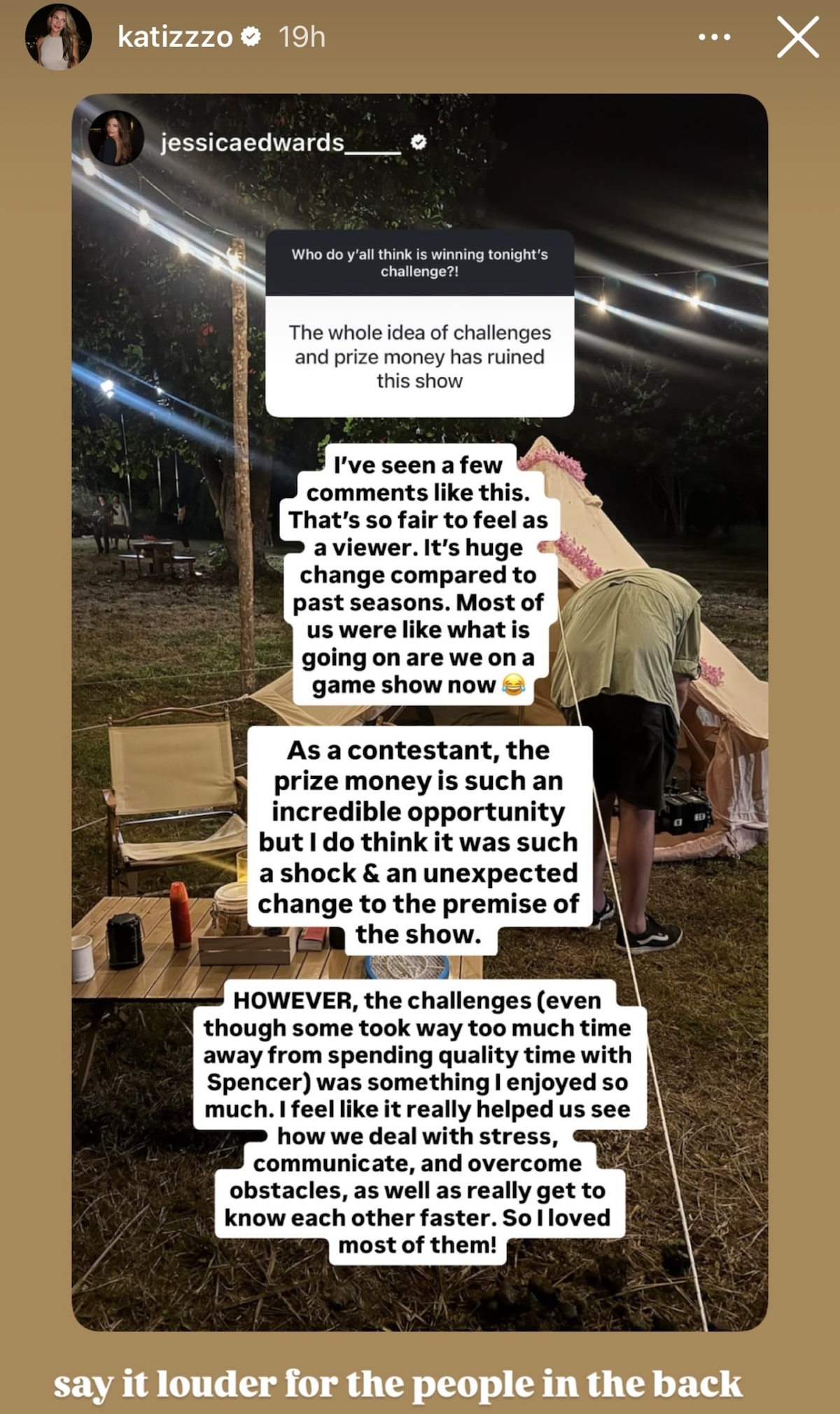 In a fan Q&A on her Instagram Story, one person made a comment about how the prize money and challenges changed the show, and Jess responded with her honest opinion.