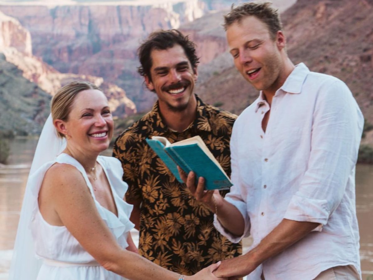 She wrote over the video, “After 3 years of infertility and baby loss, we decided to shift gears… We went on the trip of a lifetime, and brought some wedding clothes… and eloped in the bottom of the Grand Canyon!”