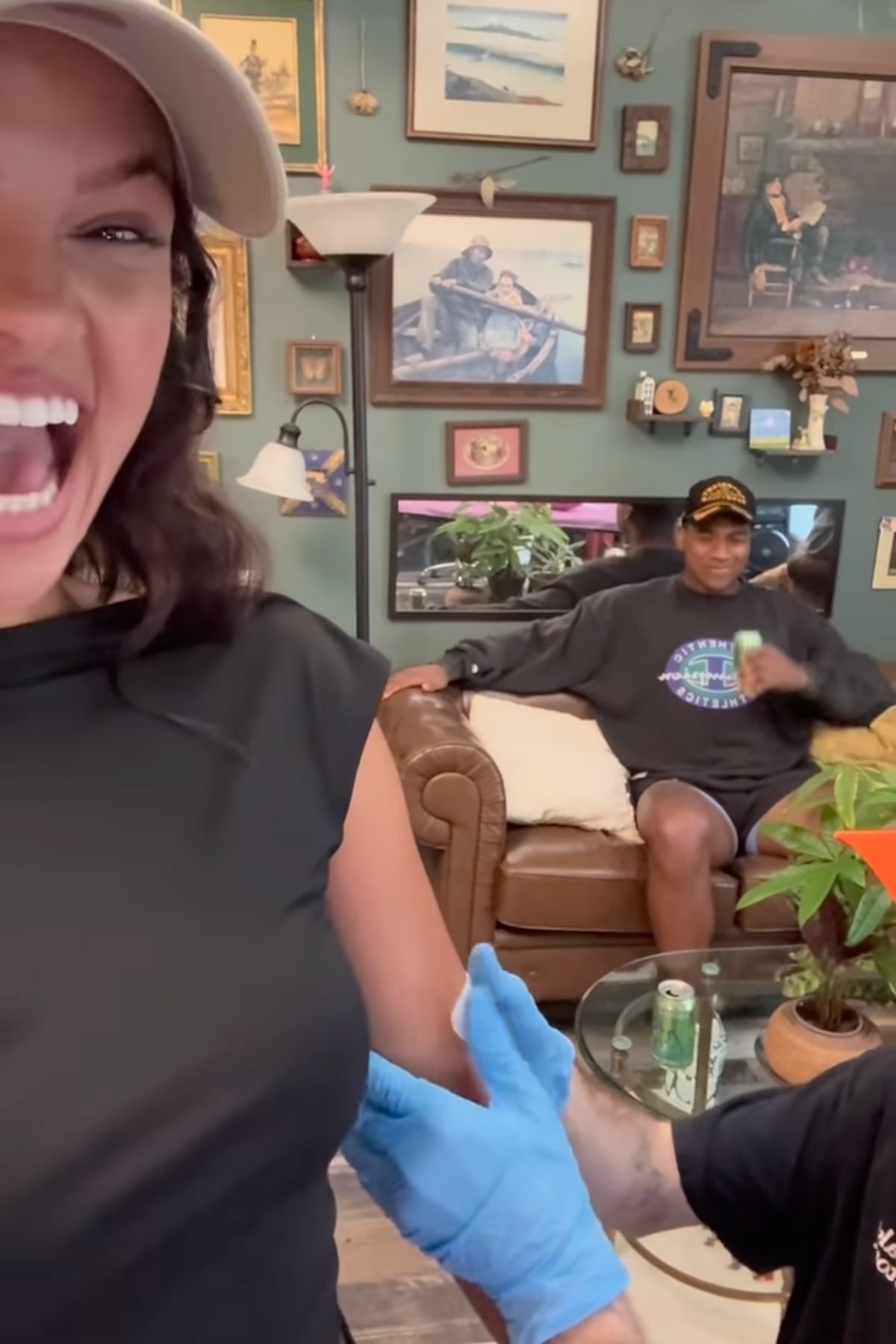 She shares, “So I thought because I already have this arm tatted that I would start with this one. I’m going to start fresh, fresh relationship… Okay, here we go!”
