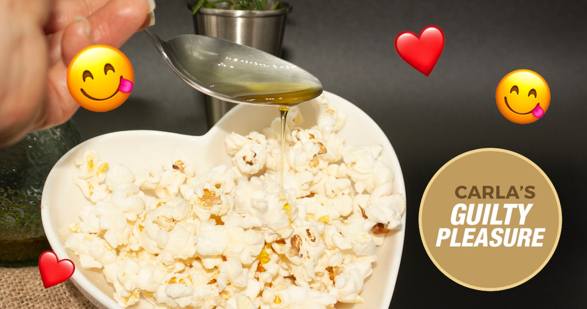 3. My guilty pleasure is: One of my guilty pleasures is popcorn that I pop in my air popper. After it’s freshly popped, I drizzle it with olive oil and add a dash of sea salt. It’s a treat that I find impossible to resist! I eat each kernel one at a time.