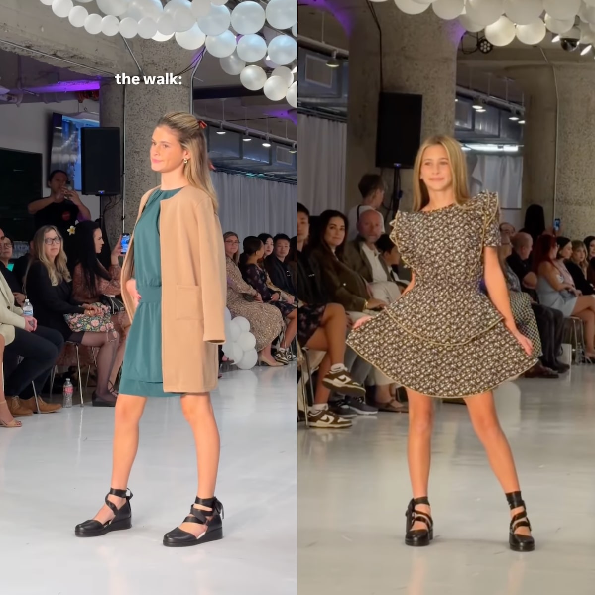 The video then shows Kinsley and Charlie walking in a fashion show with the text, “the walk:”