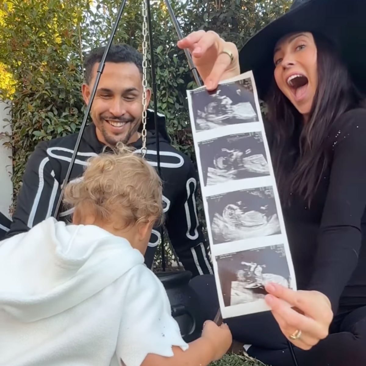 Thomas and Becca then pull out a sonogram from the cauldron and share a sweet kiss before showing Benny sitting next to a carved pumpkin that reads, “Big Brother.”