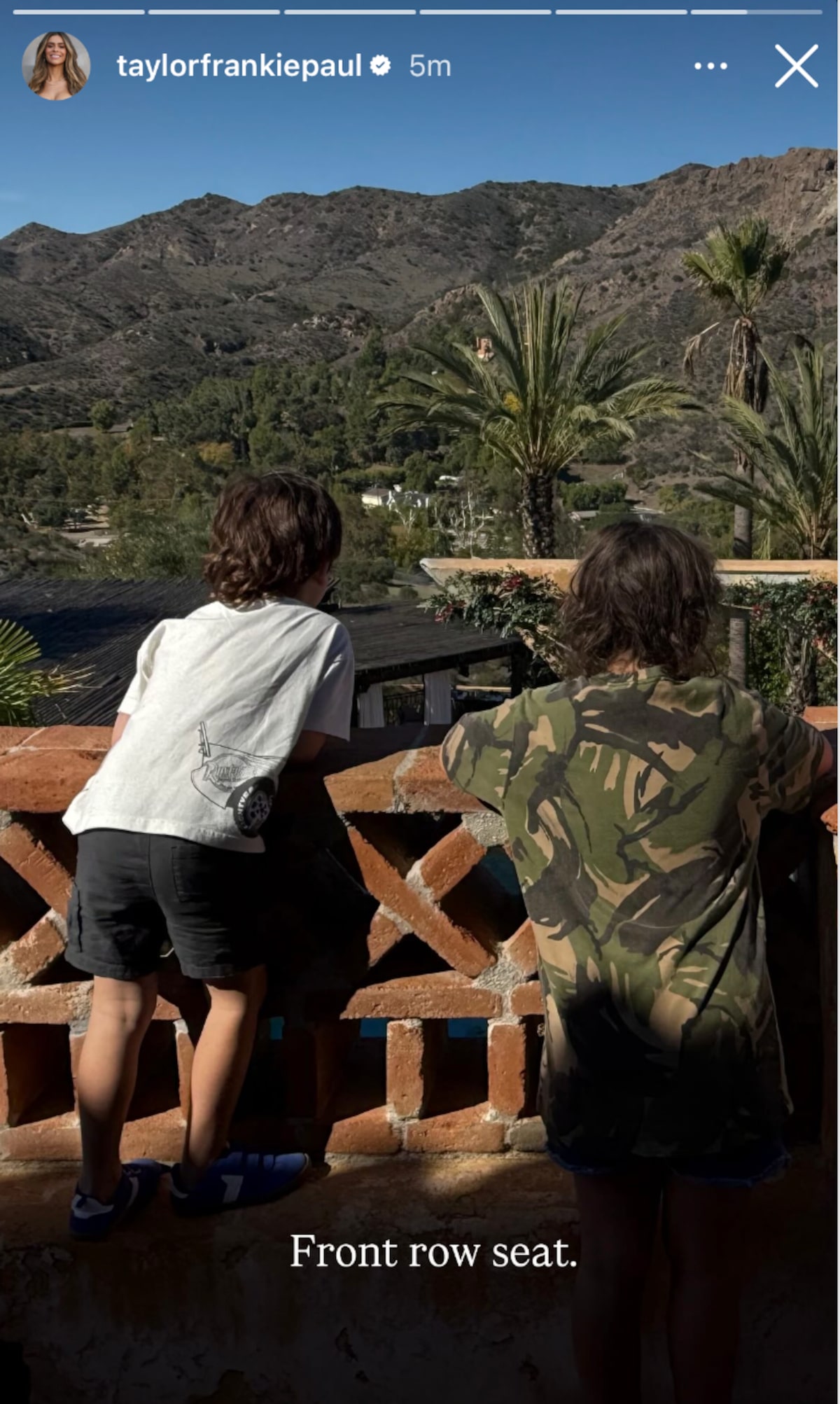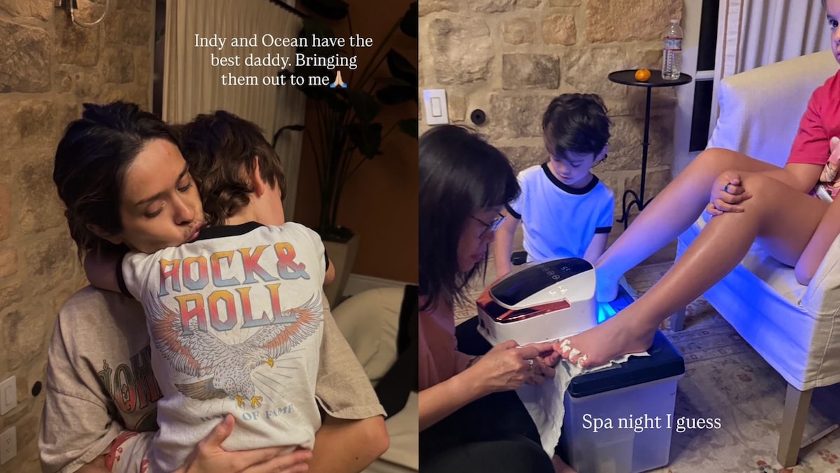 The new Bachelorette took to Instagram to post photos of her children visiting her on set. In her Stories, she wrote, “Indy and Ocean have the best daddy. Bringing them out to me 🙏.”
