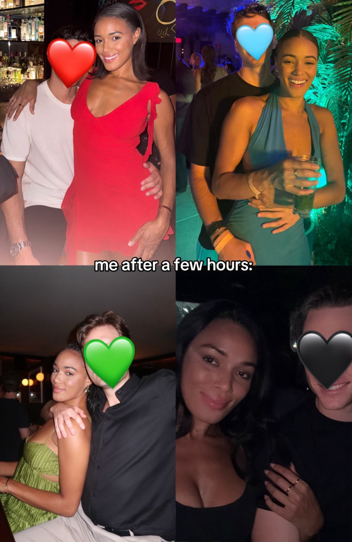 The final slide of the post shows four different photos of Zoe posing with a guy with a heart over his face, and the text, “Me after a few hours.”