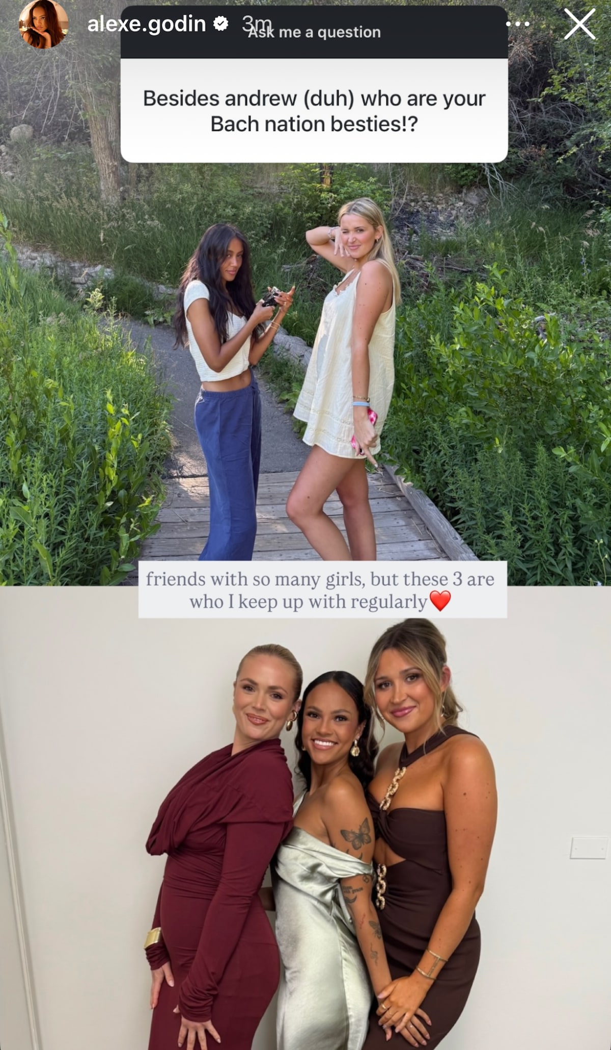 Alexe was then asked who her besties are within Bachelor Nation, and she revealed the people who she’s remained closest to.