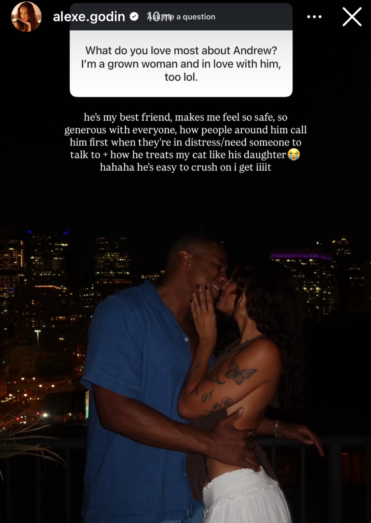 During a fan Q&A on her Instagram Story, a fan asked Alexe what she loves most about Andrew.