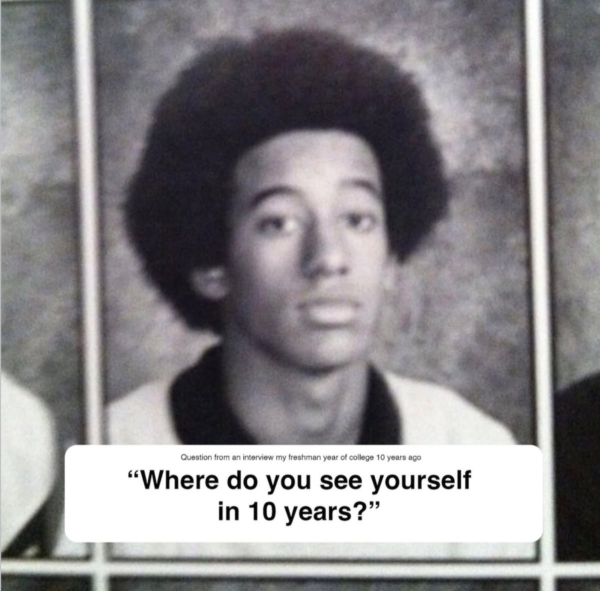 He said, “This Q&A is from my freshman year of college where I predicted my future. Now, 15 years later, let’s see what holds true.”