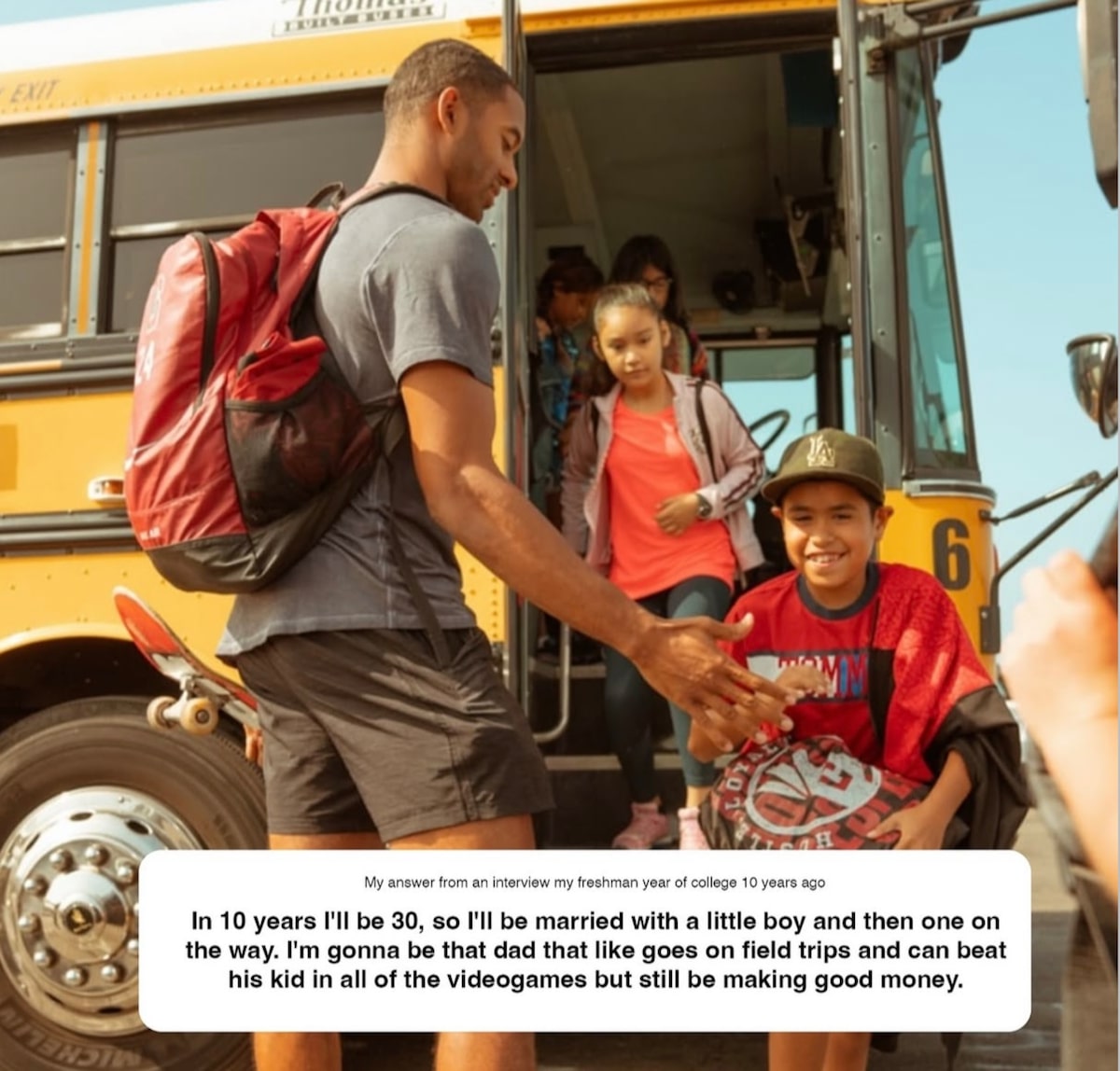 He said, “In 10 years I’ll be 30, so I’ll be married with a little boy and then one on the way. I’m gonna be that dad that goes on field trips and can beat his kid in all of the video games but still be making good money.”